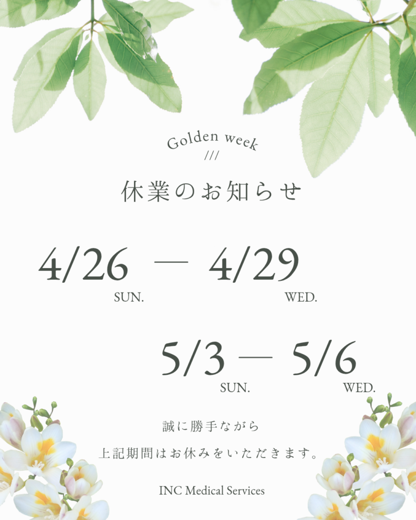 4/26(日)~4/29(水)、5/3(日) 〜 5/6(水)