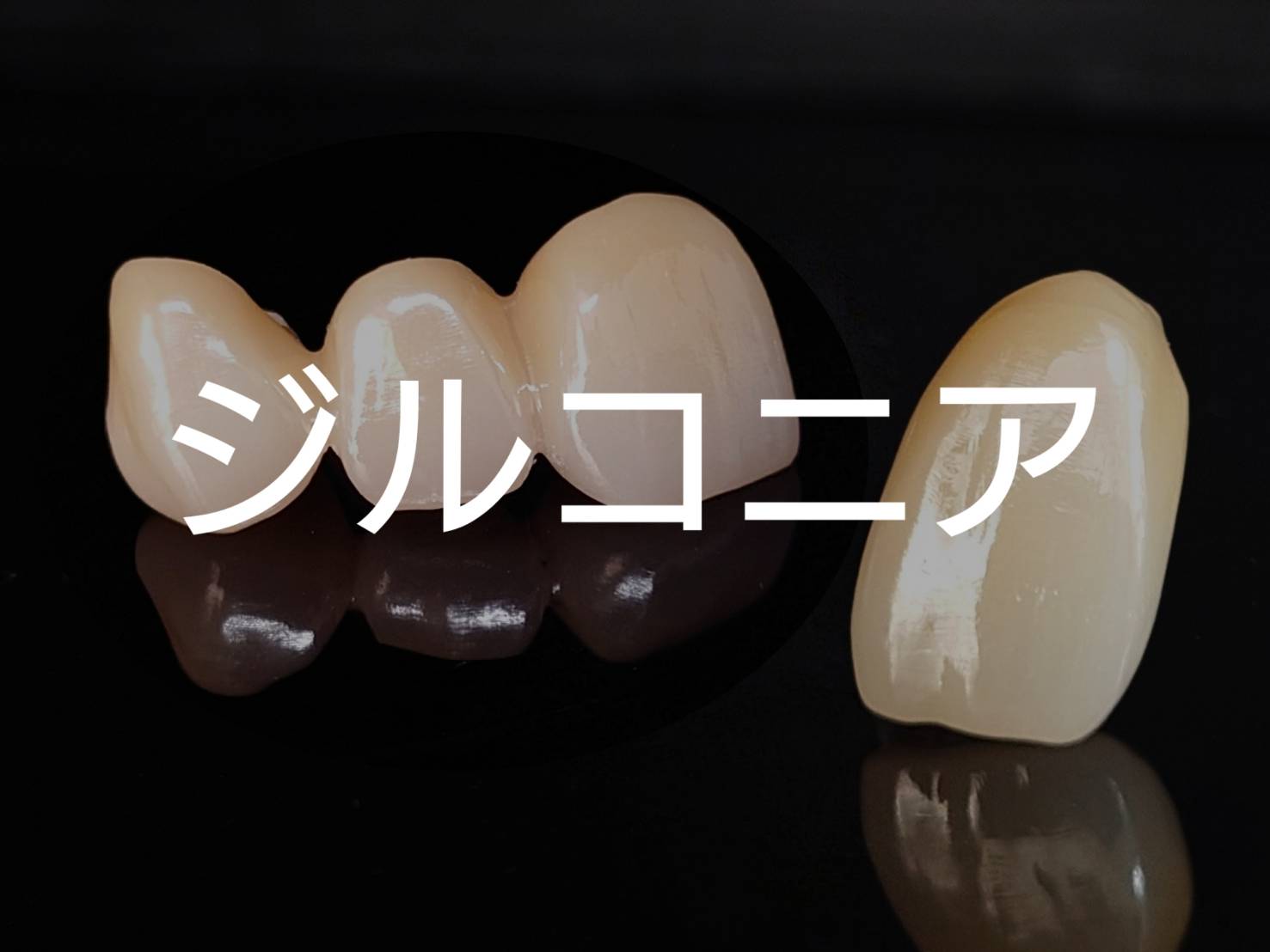 従来のメタルボンドの金属部分をジルコニアフレームに置き換えたもので、単一素材で製作するモノリシックジルコニアに比べ強度は落ちるものの、歯質の透明度等の再現性が高く審美性に優れています。